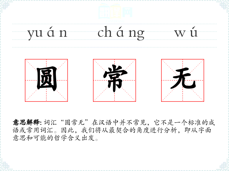 词汇“圆常无”在汉语中并不常见,它不是一个标准的成语或常用词汇。因此,我们将从最契合的角度进行分析,即从字面意思和可能的哲学含义出发。