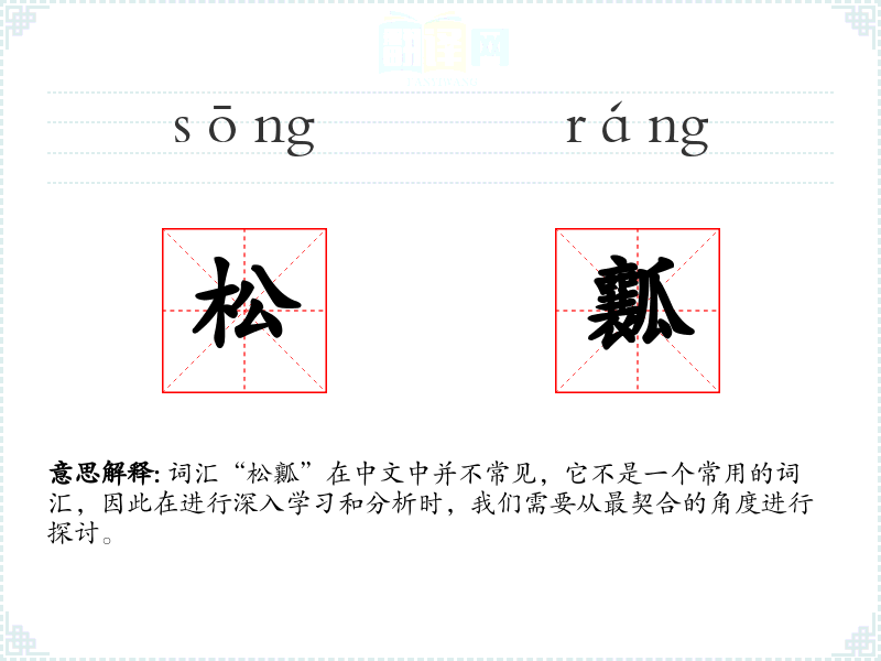 - 反义词:(由于“松瓤”不是一个常用词汇,反义词不明显)