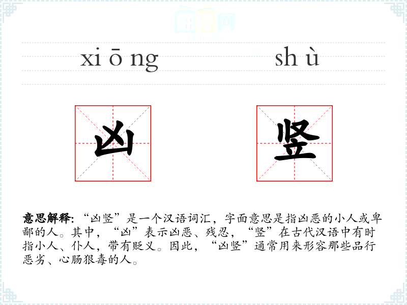 在文学作品中,“凶竖”常用于描述反面角色,如恶霸、奸臣等。在口语中,这个词汇可能不太常用,但在某些特定的语境下,如历史讨论、戏剧表演或文学批评中,可能会出现。在专业领域,如历史学、文学研究中,这个词汇可能会被用来分析特定历史人物或文学角色的性格特征。