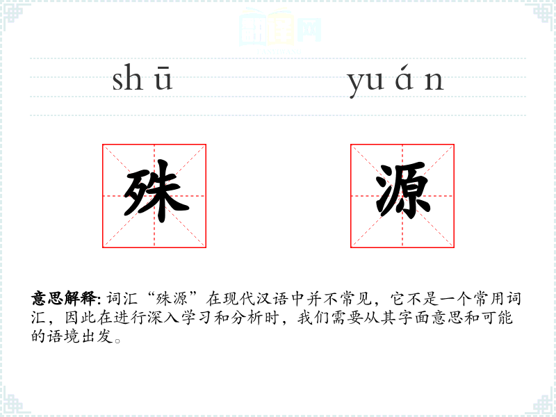 词汇“殊源”在现代汉语中并不常见,它不是一个常用词汇,因此在进行深入学习和分析时,我们需要从其字面意思和可能的语境出发。