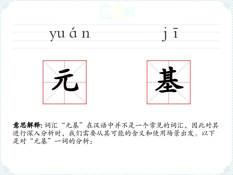 词汇“元基”在汉语中并不是一个常见的词汇,因此对其进行深入分析时,我们需要从其可能的含义和使用场景出发。以下是对“元基”一词的分析: