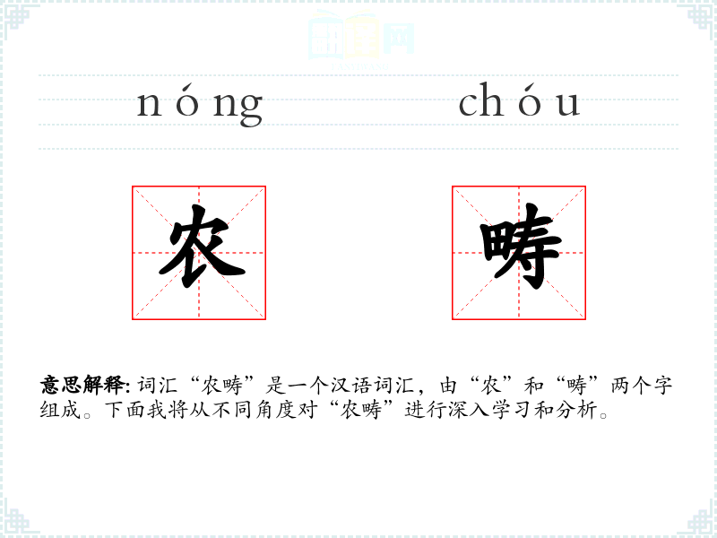 词汇“农畴”是一个汉语词汇,由“农”和“畴”两个字组成。下面我将从不同角度对“农畴”进行深入学*和分析。