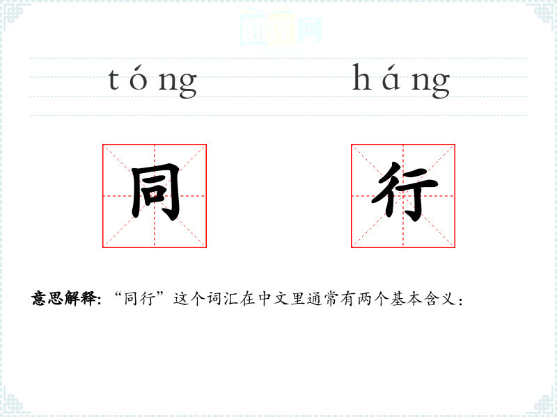 “同行”这个词汇在中文里通常有两个基本含义: