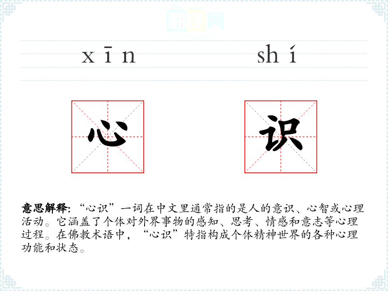 在英文中,“mind”或“consciousness”可以对应“心识”,但“心识”在中文中带有更深的哲学和文化内涵。
