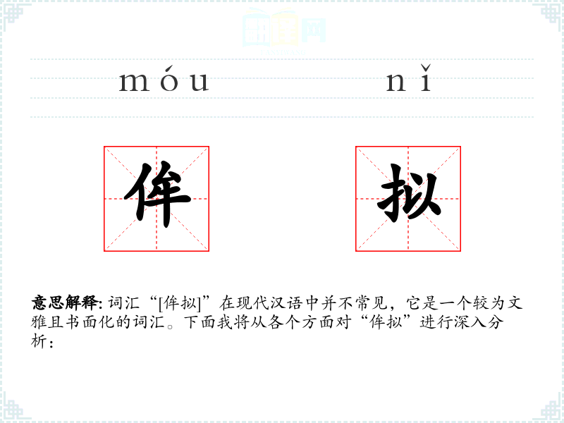词汇“[侔拟]”在现代汉语中并不常见,它是一个较为文雅且书面化的词汇。下面我将从各个方面对“侔拟”进行深入分析:
