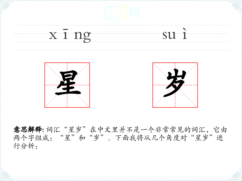 - 词源:“星”和“岁”都是古汉语中的常用字,组合起来形成了一个富有诗意的词汇。