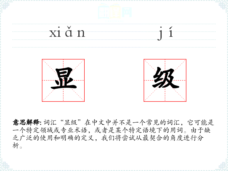 总的来说,“显级”不是一个标准词汇,它的含义和使用需要根据上下文来确定。在语言学习和表达中,了解特定领域或语境下的专业术语是非常重要的,这有助于更好地理解和沟通。