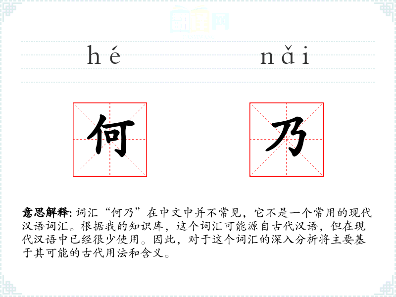 - 反义词:无(因为“何乃”本身是疑问词,不易直接对应反义词)