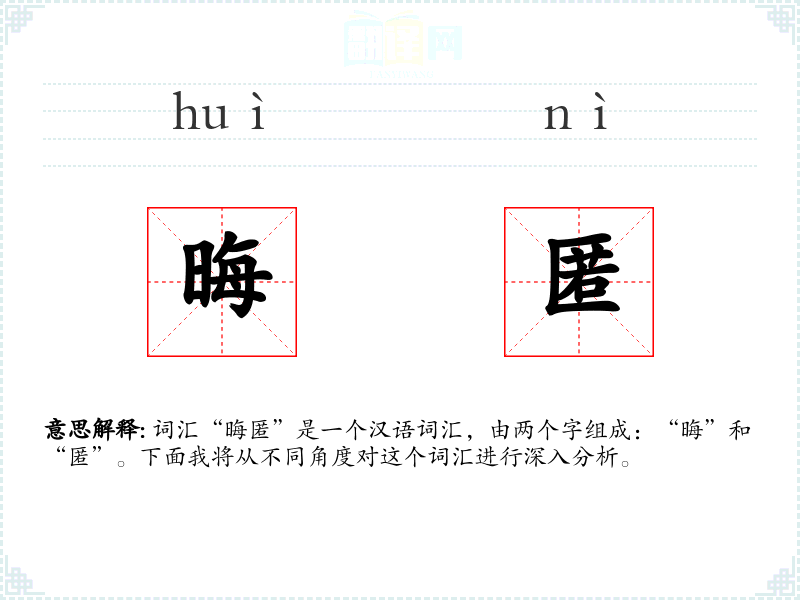 “晦”字在古代汉语中指阴暗、不明亮,而“匿”字则指隐藏、不公开。两个字组合起来,形成了“晦匿”这个词汇,强调了隐蔽和不显露的特性。