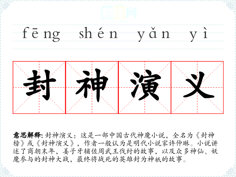 《封神演义》不仅是一部文学作品,更是一种文化符号,它承载了丰富的历史和文化信息。通过对这一词汇的学*和分析,我更加深刻地理解了**古代文学的魅力和价值,也认识到了它在现代社会中的持续影响力。