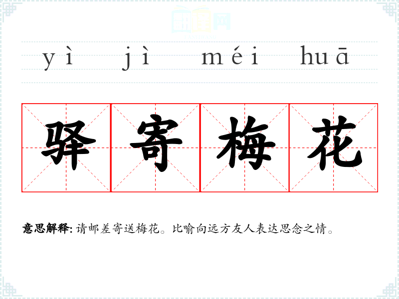 请邮差寄送梅花。比喻向远方友人表达思念之情。