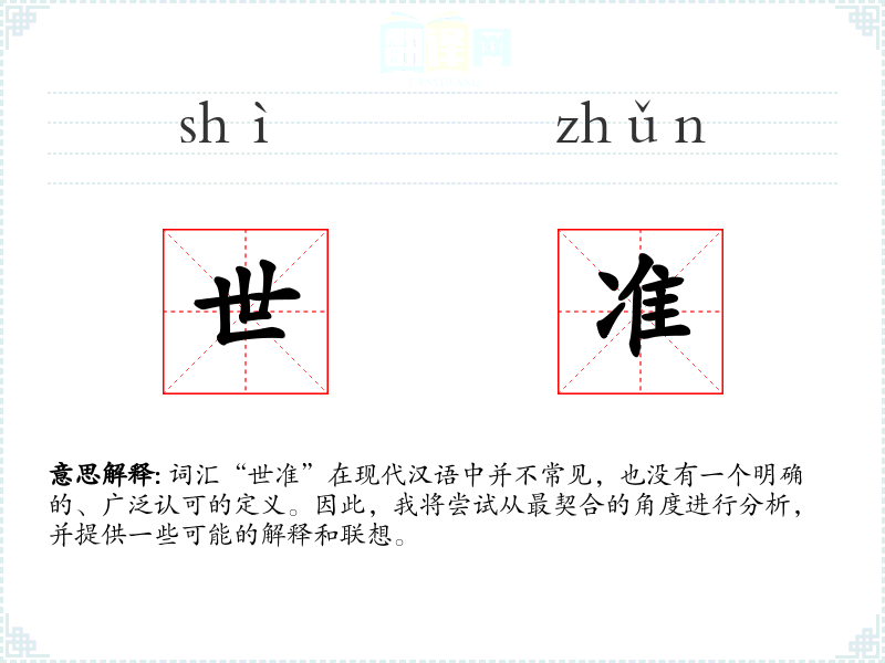 由于“世准”不是一个标准的汉语词汇,我们可以尝试从字面意思来解释: