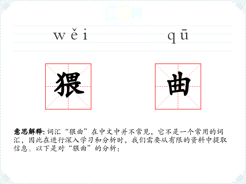 词汇“猥曲”在中文中并不常见,它不是一个常用的词汇,因此在进行深入学*和分析时,我们需要从有限的资料中提取信息。以下是对“猥曲”的分析: