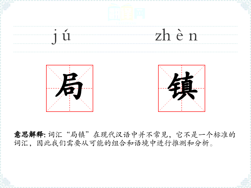 词汇“局镇”在现代汉语中并不常见,它不是一个标准的词汇,因此我们需要从可能的组合和语境中进行推测和分析。