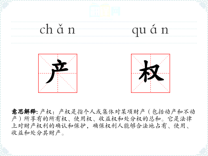 - 重要性:在语言学习和表达中,理解产权的概念有助于更好地参与法律、经济和社会活动,提升对财产权利的认识和保护意识。