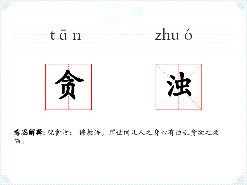 犹贪污; 佛教语。谓世间凡人之身心有浊乱贪欲之烦恼。