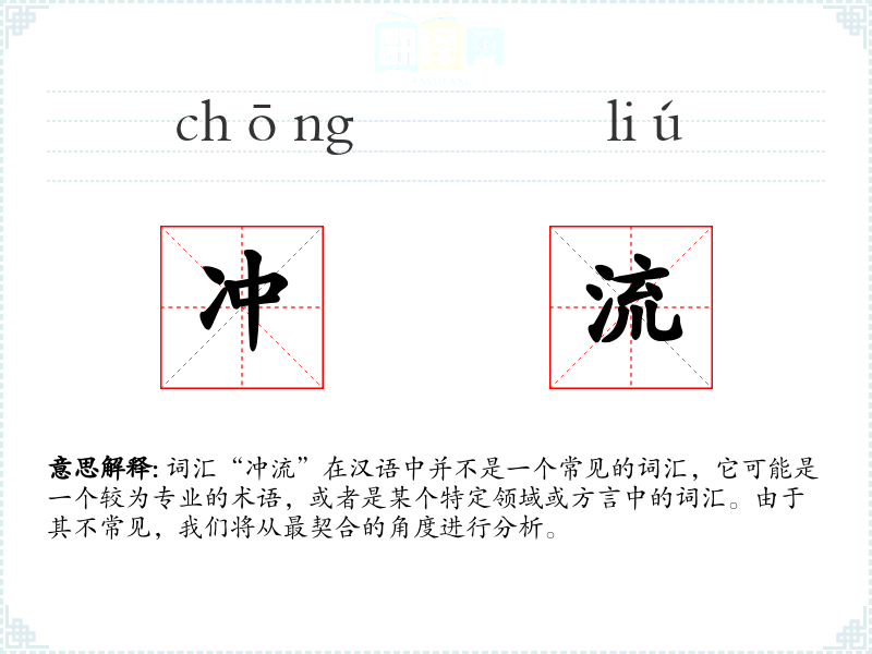 由于“冲流”不是一个常用词汇,其词源和历史演变可能不为人所熟知。它可能是由“冲”和“流”两个字组合而成,描述水流的动态特性。