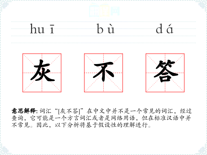 词汇“[灰不答]”在中文中并不是一个常见的词汇,经过查询,它可能是一个方言词汇或者是网络用语,但在标准汉语中并不常见。因此,以下分析将基于假设性的理解进行。