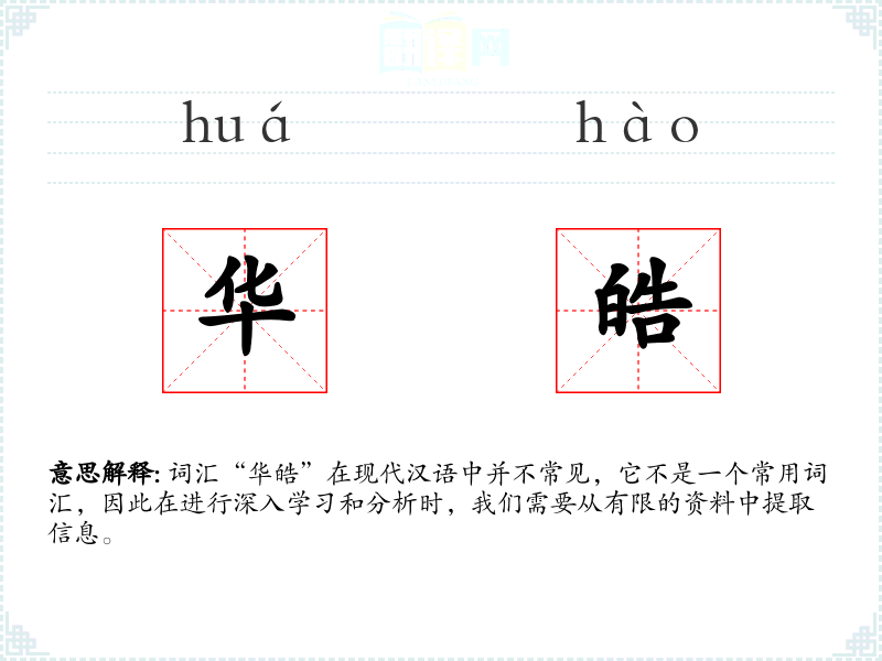 词汇“华皓”在现代汉语中并不常见,它不是一个常用词汇,因此在进行深入学*和分析时,我们需要从有限的资料中提取信息。