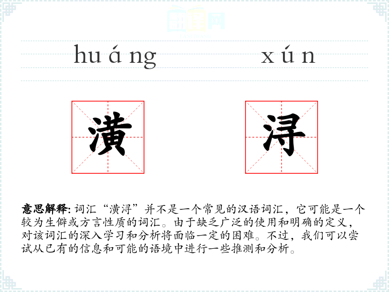 由于“潢浔”不是一个标准汉语词汇,我们无法给出确切的字面意思和基本含义。它可能是某个地区方言中的词汇,或者是古代文献中出现的词汇,具体含义需要结合具体的语境来解释。