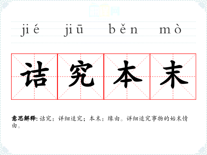诘究:详细追究;本末:缘由。详细追究事物的始末情由。