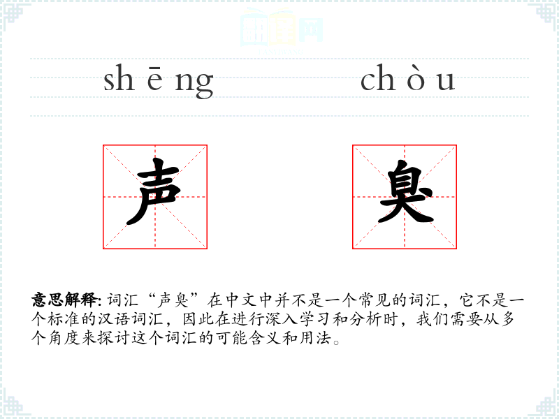 词汇“声臭”在中文中并不是一个常见的词汇,它不是一个标准的汉语词汇,因此在进行深入学习和分析时,我们需要从多个角度来探讨这个词汇的可能含义和用法。