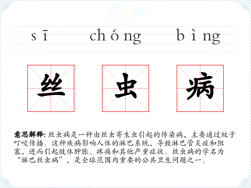 "丝虫病"的意思解释、丝虫病是什么意思由翻译网汉语词典查词提供。