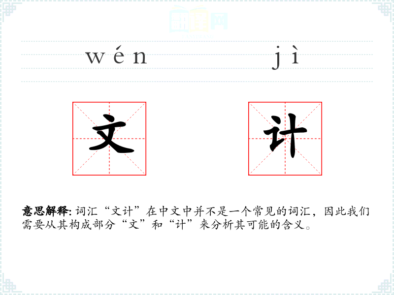 词汇“文计”在中文中并不是一个常见的词汇,因此我们需要从其构成部分“文”和“计”来分析其可能的含义。
