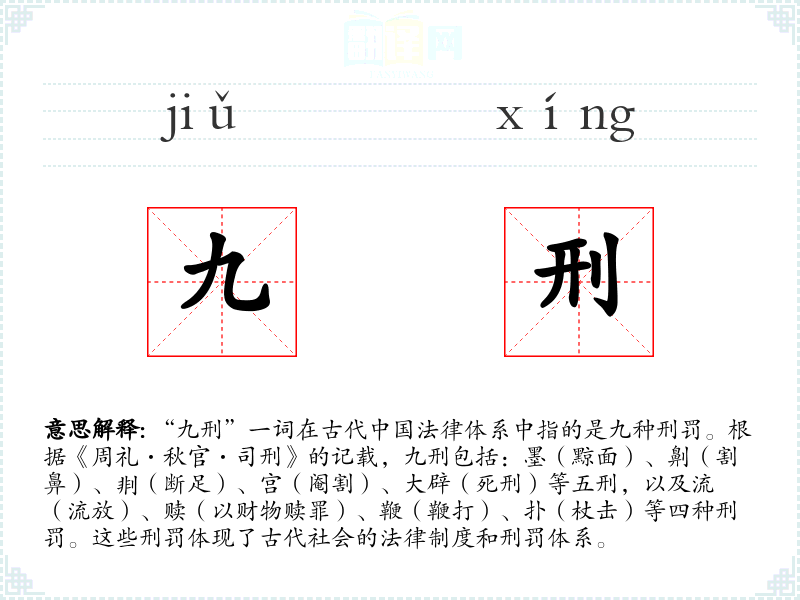 - 反义词:无(由于“九刑”是一个特定的历史术语,没有直接的反义词)