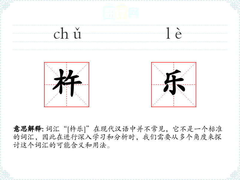 词汇“[杵乐]”在现代汉语中并不常见,它不是一个标准的词汇,因此在进行深入学习和分析时,我们需要从多个角度来探讨这个词汇的可能含义和用法。