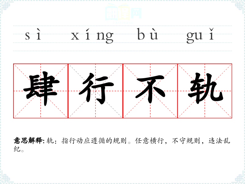 轨:指行动应遵循的规则。任意横行,不守规则,违法乱纪。