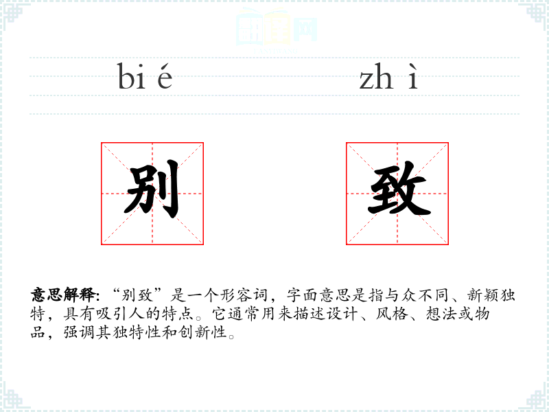 "别致"的意思解释、别致是什么意思由翻译网汉语词典查词提供。