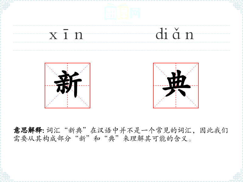 词汇“新典”在汉语中并不是一个常见的词汇,因此我们需要从其构成部分“新”和“典”来理解其可能的含义。