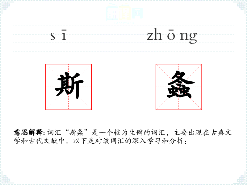 词汇“斯螽”是一个较为生僻的词汇,主要出现在古典文学和古代文献中。以下是对该词汇的深入学*和分析: