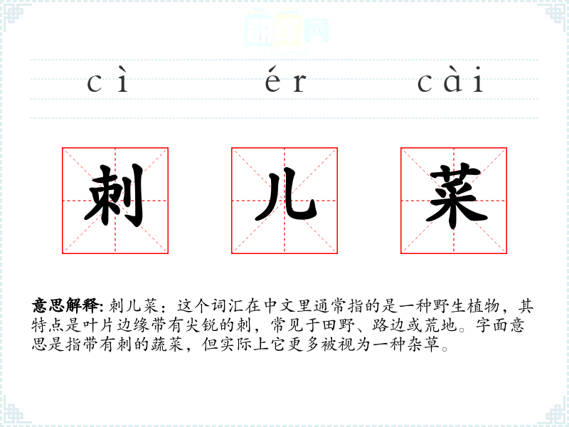 刺儿菜:这个词汇在中文里通常指的是一种野生植物,其特点是叶片边缘带有尖锐的刺,常见于田野、路边或荒地。字面意思是指带有刺的蔬菜,但实际上它更多被视为一种杂草。