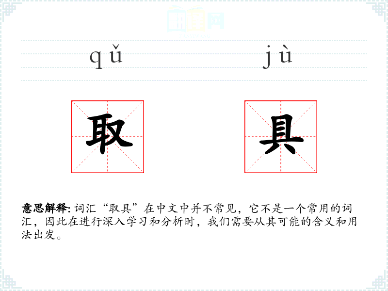 词汇“取具”在中文中并不常见,它不是一个常用的词汇,因此在进行深入学习和分析时,我们需要从其可能的含义和用法出发。