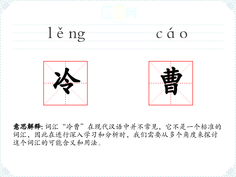 词汇“冷曹”在现代汉语中并不常见,它不是一个标准的词汇,因此在进行深入学习和分析时,我们需要从多个角度来探讨这个词汇的可能含义和用法。