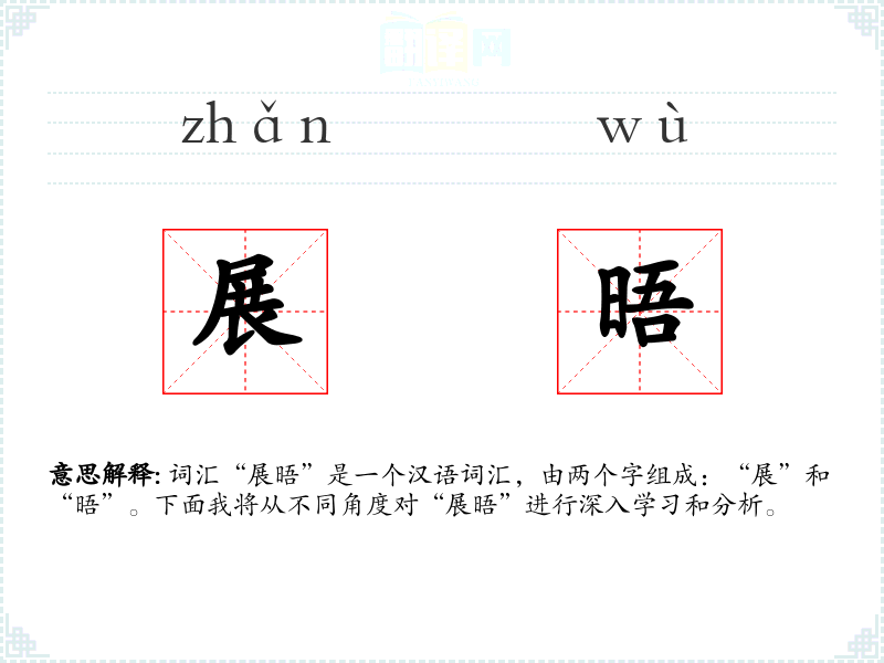 词汇“展晤”是一个汉语词汇,由两个字组成:“展”和“晤”。下面我将从不同角度对“展晤”进行深入学*和分析。