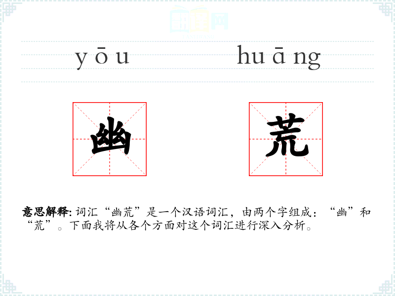 - 词源:“幽”和“荒”都是古代汉语词汇,历史悠久。