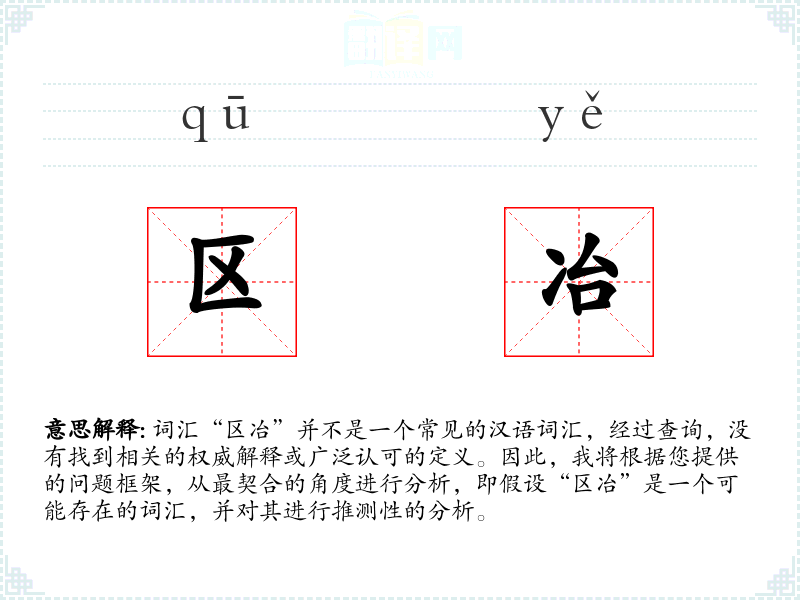 由于“区冶”不是一个已知的词汇,我们可以尝试从字面意思进行推测: