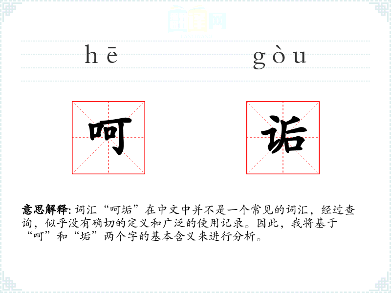 由于“呵垢”不是一个常用词汇,个人应用场景有限。