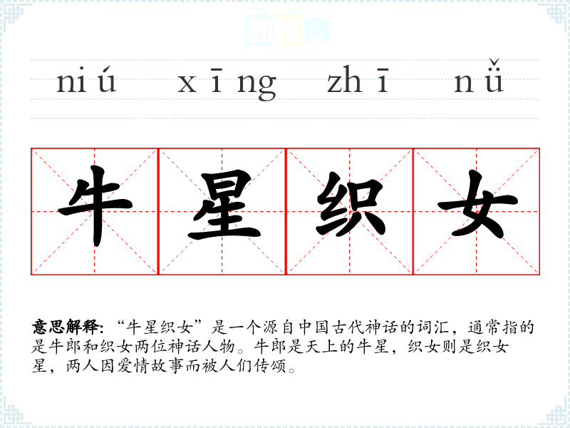 “牛星织女”源自**古代的神话传说,最早见于《诗经》等古籍。随着时间的推移,这个词汇逐渐成为表达爱情坚贞的象征,并在民间传说和文学作品中广泛流传。