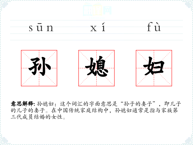 - 同义词:孙媳(更为简洁的表达)