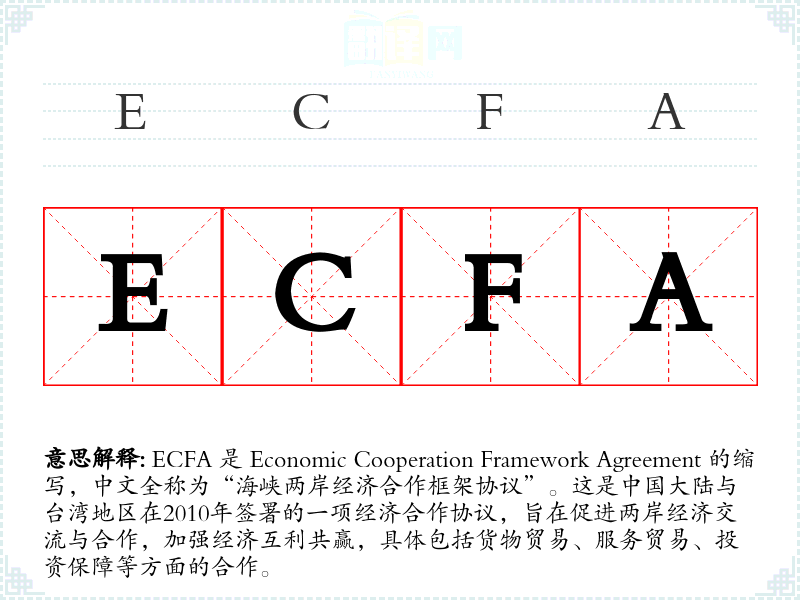 - 专业领域:在经济、政治和国际关系领域,ECFA 是一个专业术语,用于讨论两岸经济合作的具体内容和影响。