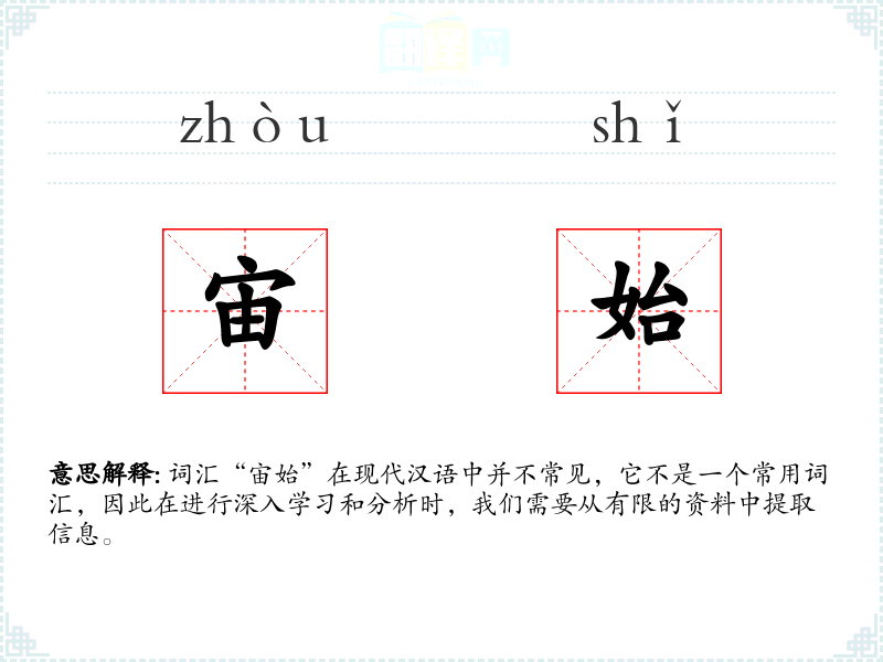 词汇“宙始”在现代汉语中并不常见,它不是一个常用词汇,因此在进行深入学*和分析时,我们需要从有限的资料中提取信息。