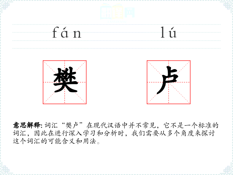词汇“樊卢”在现代汉语中并不常见,它不是一个标准的词汇,因此在进行深入学习和分析时,我们需要从多个角度来探讨这个词汇的可能含义和用法。