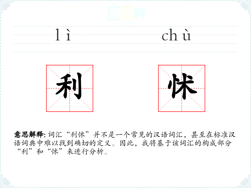 尽管“利怵”不是一个标准词汇,通过对其构成部分的分析,我们可以理解它可能表达的含义。在语言学习和表达中,理解词汇的构成和可能的含义对于扩展词汇量和提高表达能力是有帮助的。