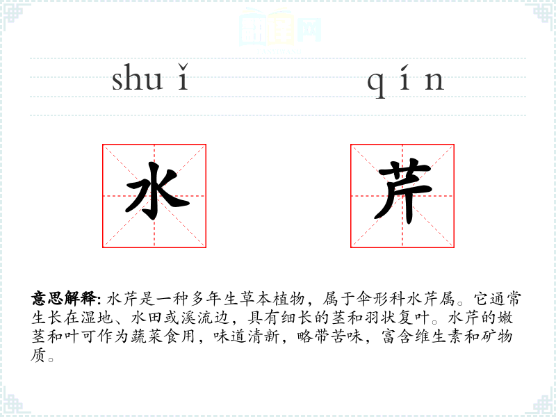 "水芹"的意思解释、水芹是什么意思由翻译网汉语词典查词提供。
