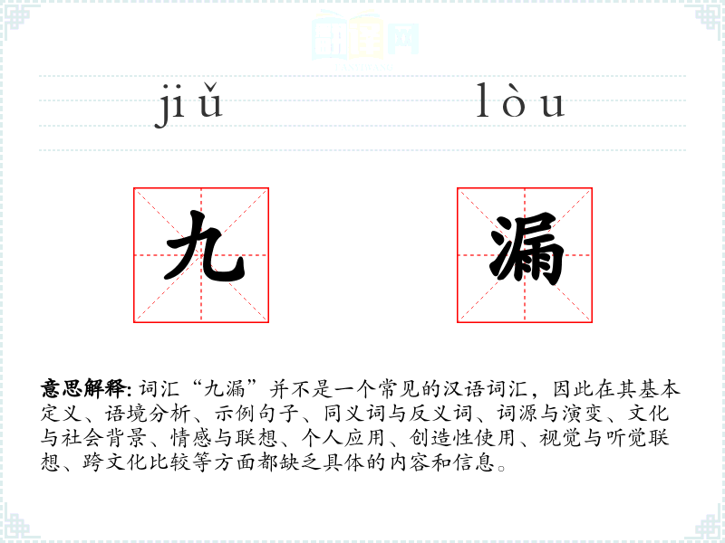 由于“九漏”不是一个标准的汉语词汇,我无法提供关于它的详细分析。如果这是一个特定领域或方言中的词汇,可能需要更具体的信息和上下文来准确理解和分析。