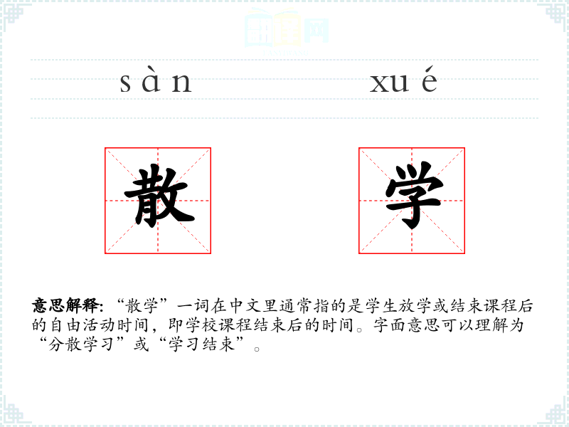 “散学”这个词虽然简单,但它承载了学生生活的日常节奏和情感体验。在语言学*和表达中,理解这样的词汇能帮助我们更好地把握和表达生活中的细节和情感。